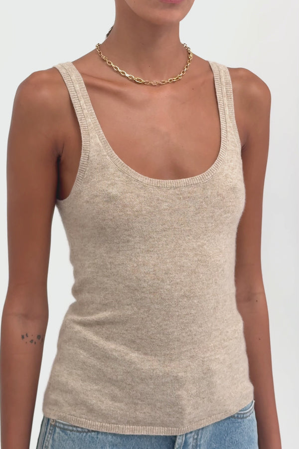 The Dropshoulder Cashmere Cardigan in Sand is a relaxed knit crafted from soft cashmere. Designed with a crew neckline and dropped shoulders, it’s finished with ribbed trims for a refined finish. Wear it buttoned as a top, layered over a tank, or styled with the matching cashmere tank.