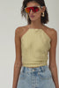 The Silk Scarf Halter Top in Pale Yellow/Amber V Monogram is a handkerchief‑style silhouette with a high halter neck and self flat ties. The low back and adjustable waist tie let you wear it how you like — over shorts, skirts for an elevated look.